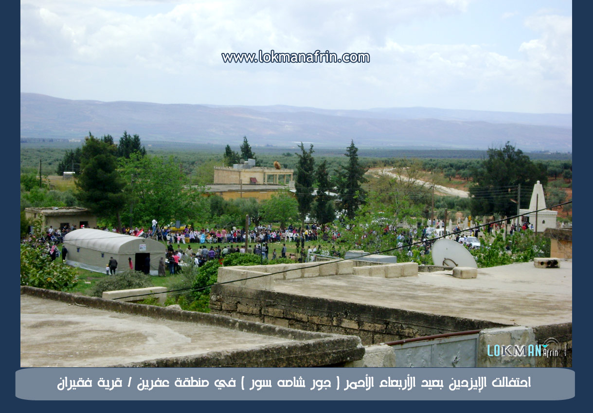 في شهر نيسان. ويقام الاحتفال عادة بجوار مزار القرية، وتقدم القرابين، ويوزع