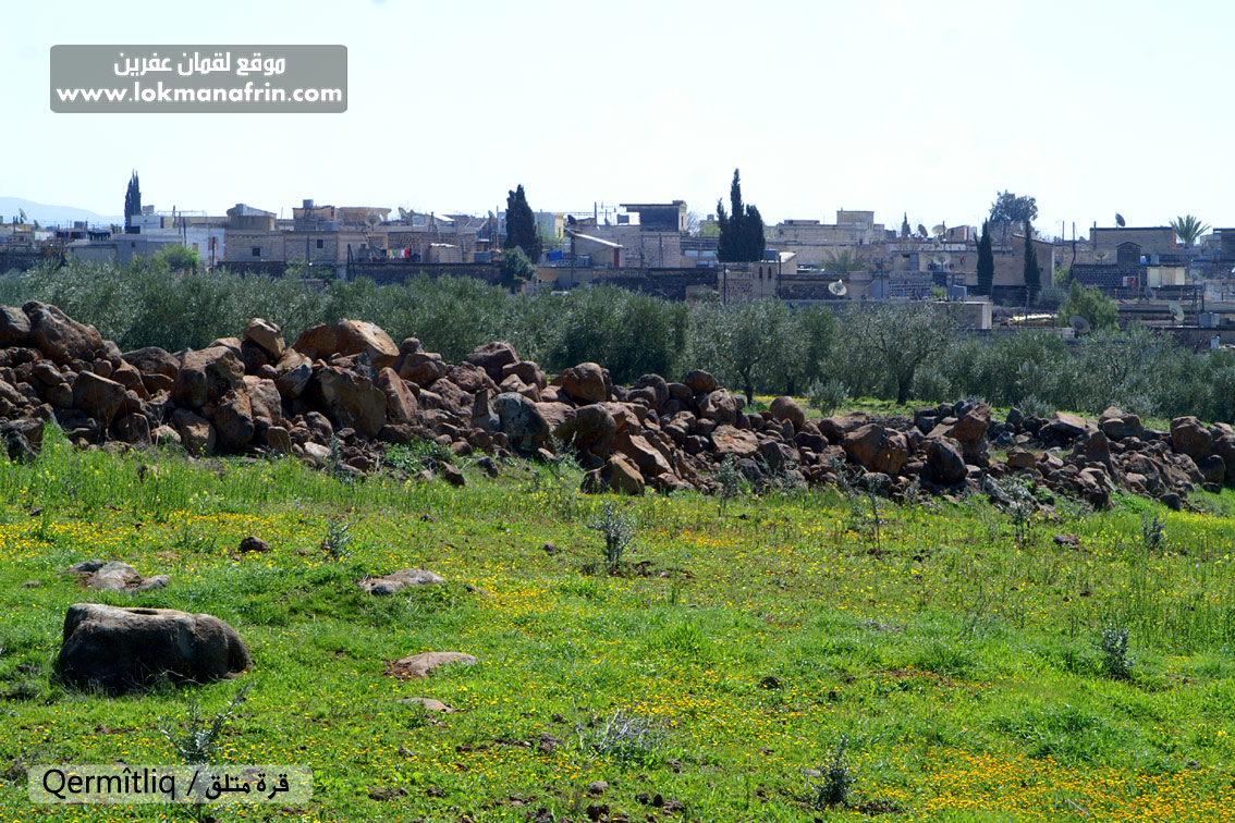 تقع غربي بلدة شيخ الحديد بمحاذاة الحدود التركية، تحيط بها الأسلاك