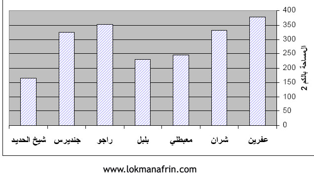 مخطط بياني لمساحة النواحي الإدارية في منطقة عفرين