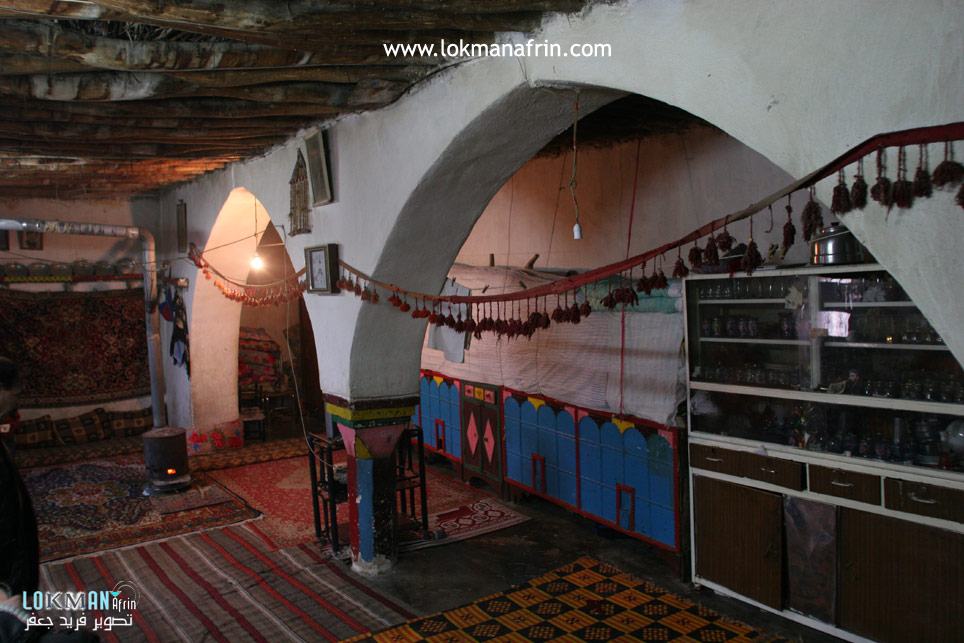 كانت البيوت القديمة في منطقة عفرين تتميز بالبساطة وتكاد تخلو من معظم العناصر المادية الحالية و تتصف بجمالها وهدوئها وتلاؤمها مع المناخ المحلي . بنيت القرية الجبلية على السفوح والمنحدرات ومشارف الوديان، وأخذت منازلها شكل مدرجات، بحيث يشرف كل منزل على سقف الآخر. وعادة ما يوجد بجانب القرية منهل للماء أو نبع، أو جدولٌ جارٍ. وقد أسست غالبية القرى على أطلال أبنية أثرية قديمة أو بجوارها، حيث استفاد السكان من أحجارها في البناء، ومن الآبار والصهاريج الأثرية القديمة لتأمين مياه الشرب، إضافة إلى توفر المغاور والكهوف في تلك المواقع المأهولة سابقا.  كانت أرضية وأساسات دار السكن تحفر عميقا في الأرض، بحيث يكون الجدار الخلفي مستويا مع سطح الأرض تقريبا، مستفيدين من التضاريس المائلة، ليسهل الوصول إلى سطح الدار، وإجراء الصيانة لها، فالواجب كان يستدعي تلييس سطح الدار سنويا في أواخر الخريف، ودحله عدة مرات في الشتاء لكي لايرشح ماء المطر. إضافة إلى توفير إمكانية إزالة الثلج من فوق السطوح أثناء سقوطه الكثيف .