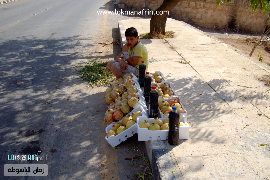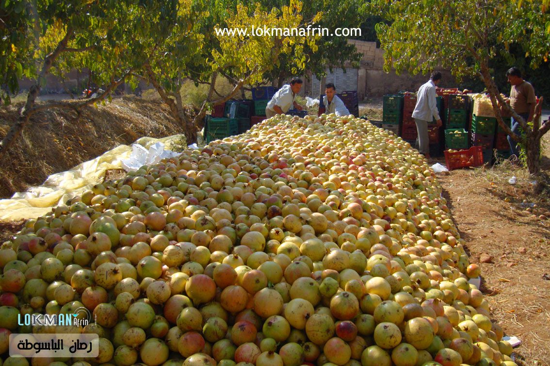 في السهول الممتدة من مدينة عفرين إلى قرى الباسوطة وقرزيحل وبرج عبدالو ، تنتشر بساتين غناء اشتهرت منذ القدم بعطائها المميز من أشجار فاكهة متنوعة ، لاسيما الرمان الذي يعتمد عليه أهل هذه القرى في تحقيق دخل جيد يعينهم على تحمل مشقات الحياة . الفلاحون في هذه المنطقة لهم خبرتهم في العناية بشجرة الرمان ، تلك الخبرة ورثوها أباً عن جد ، ناهيك عن طبيعة التربة وتوفر الماء فهما عاملان مساعدان على وفرة الإنتاج . يبدأ القطاف في أوائل شهر الخريف ، يقوم الأهالي من بعدها بعملية التخزين الطبيعي للثمار بهدف الحفاظ على سعر مرتفع له ، فعند الموسم تقل الأرباح ، يعمد الفلاحون إلى فرش الأرض بأعشاب يضعون عليها كميات كبيرة من الثمار ، يغطونها بالأعشاب إلى نهاية كانون الثاني حيث تنخفض الكمية في الأسواق فيرتفع سعر الرمان .  تلك الأعشاب لها قدرة مميزة على حفظ الثمار إذ تمنع نشفان الثمرة ويبقى لون الرمان ثابتاً وكأنه للتو جرت له عملية القطاف . يعمد الفلاحون إلى طريقة الحفظ تلك هرباً من الأسعار التي فرضها أصحاب البرادات إذ يحصلون على مبلغ : 4 ليرات عن كل ك . غ واحد ، بينما هي مجانية طريقة الحفظ التي ابتكرها أولئك الفلاحون . شجرة الرمان تمنح الفلاحين إنتاجاً سنوياً متفوقة بذلك على شجرة الزيتون التي تنتج كل سنتين مرة واحدة ، بستان الرمان يمنح الفلاح نفس الأرباح التي يجنيها من بستان الزيتون ، يبلغ الإنفاق على خدمة الشجرة الواحدة حوالي المئة ليرة سورية ، بينما هي تغدق على الفلاح بأرباح قد تصل إلى ( 1500 ل.س )