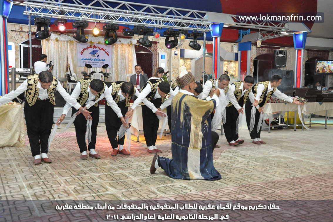 كان لفرقة عفرين للرقص الشعبي ـ التي يديرها الفنان : عصمت عزت ـ حضور مميز فقد أتحفتنا ببعض من الرقصات الفولكلورية أمتعت كل المشاهدين . تلا ذلك مراسيم تكريم للطلاب المتفوقين ، وزعت عليهم شهادات تكريم وهدايا مقدمة من شركات ومحلات تجارية ، ومن ثم التقطت للمتفوقين صور تذكارية . كان ذلك على وقع أنغام فرقة ( صول ) الموسيقية بقيادة الفنان صلاح بايرام .